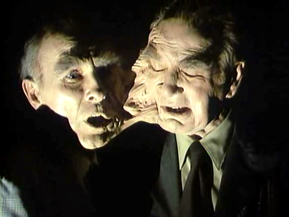 Here is a picture of the siamese twin bad guys in the film. Lloyd Kaufman wanted to just sew their clothes together and it was my idea to have them joined at the head….I had no idea they’d hire two old men for the parts. I felt so bad watching these poor guys stay glued together for 12-14 hours a day.